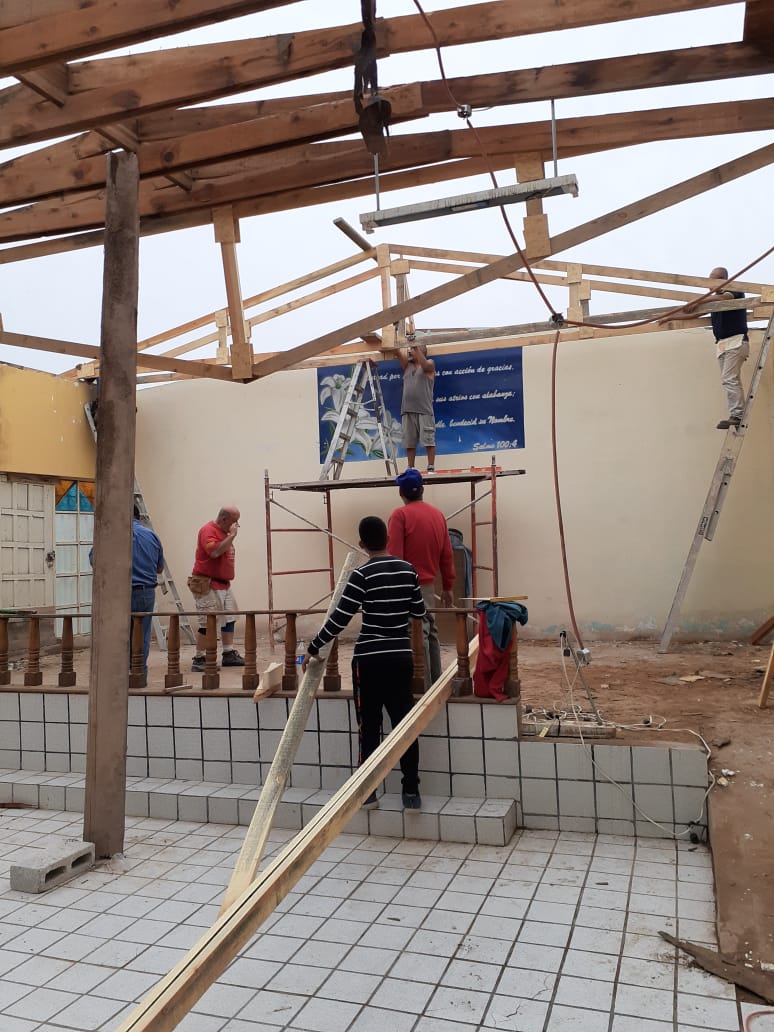 and about half the old trusses. You'll also notice we started hanging, flipping and